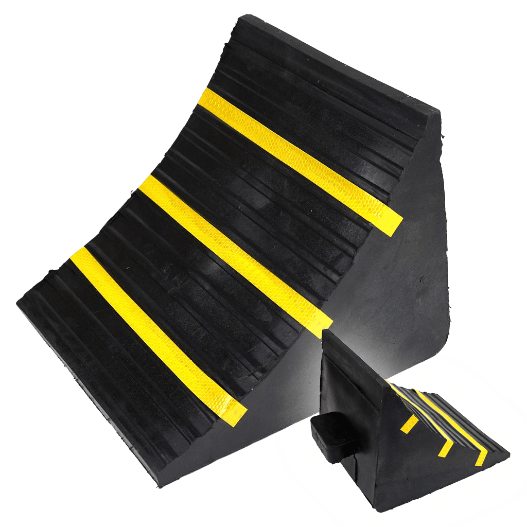 Deze extra zware rubberen wielstopper is ontworpen voor vrachtwagens en andere grote voertuigen. Met zijn hoge vorm, opvallende geel-zwarte kleur en een gewicht van 12 kg is deze stopper ideaal voor het blokkeren van wielen tijdens het laden, lossen of parkeren. Te bestellen per 2 stuks.