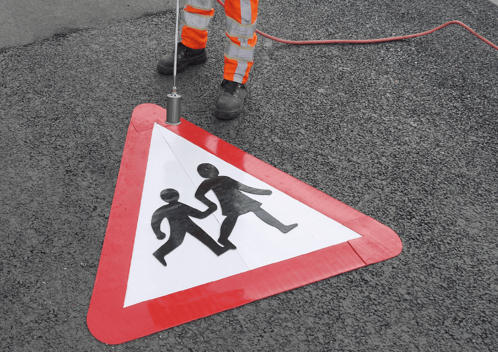 Topkwaliteit thermoplastische wegmarkering. Haaientanden in verschillende afmetingen en kleuren.