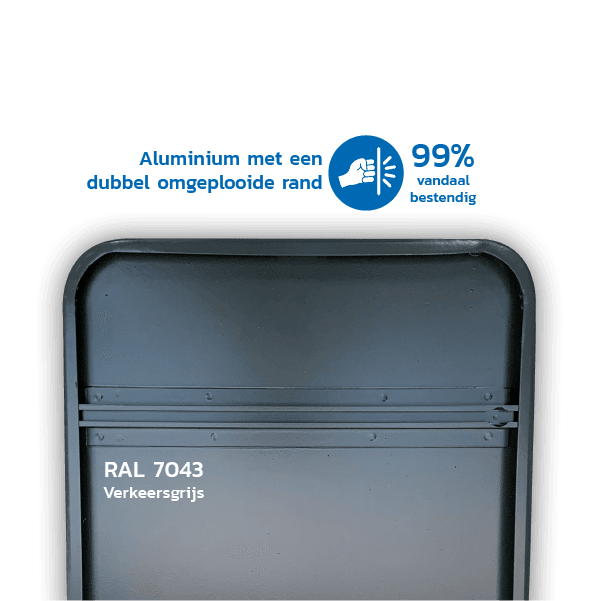 • Uitvoering bord met dubbel omgeplooide rand of in vlakke uitvoering (Alupanel 2mm)
